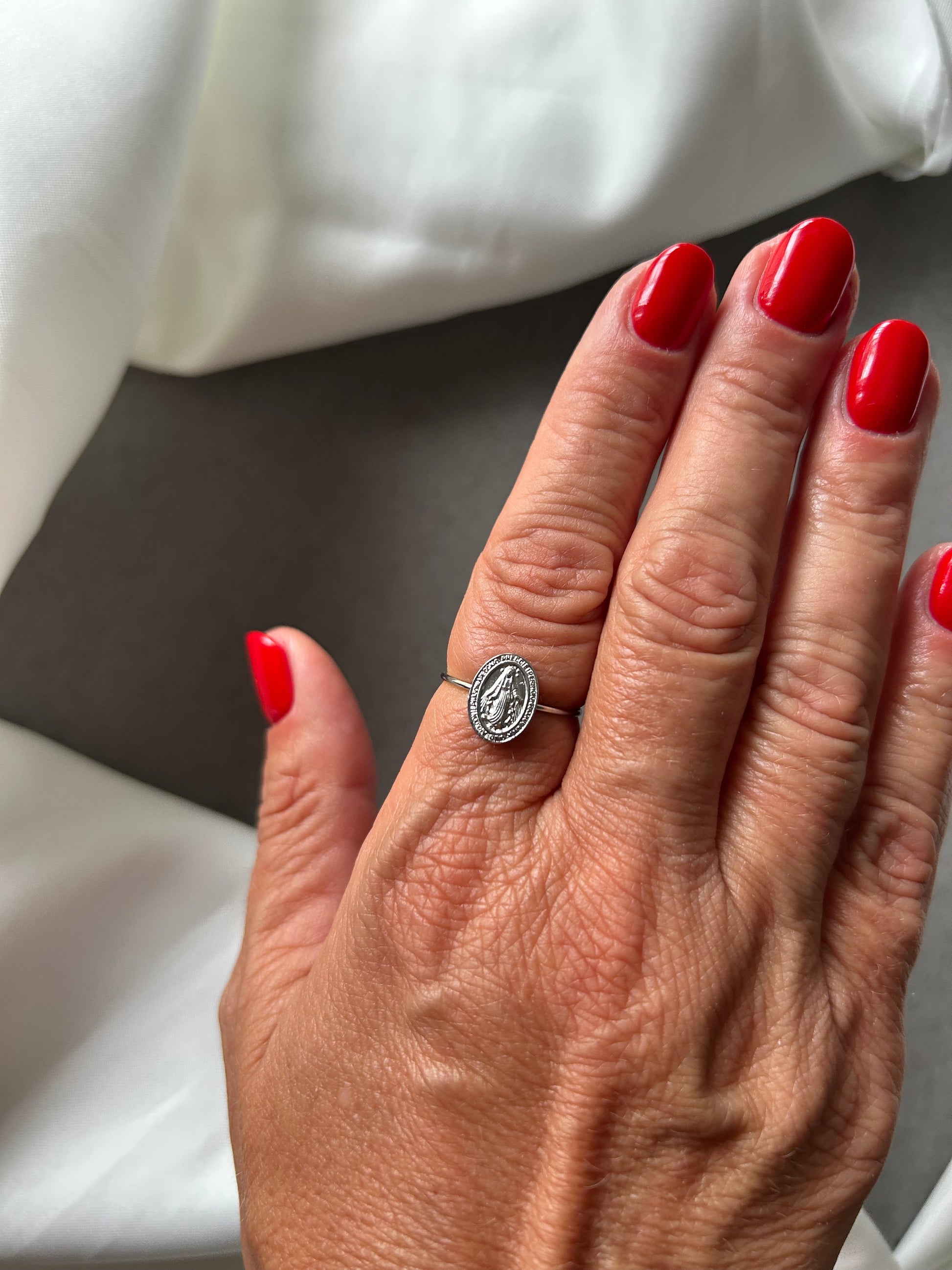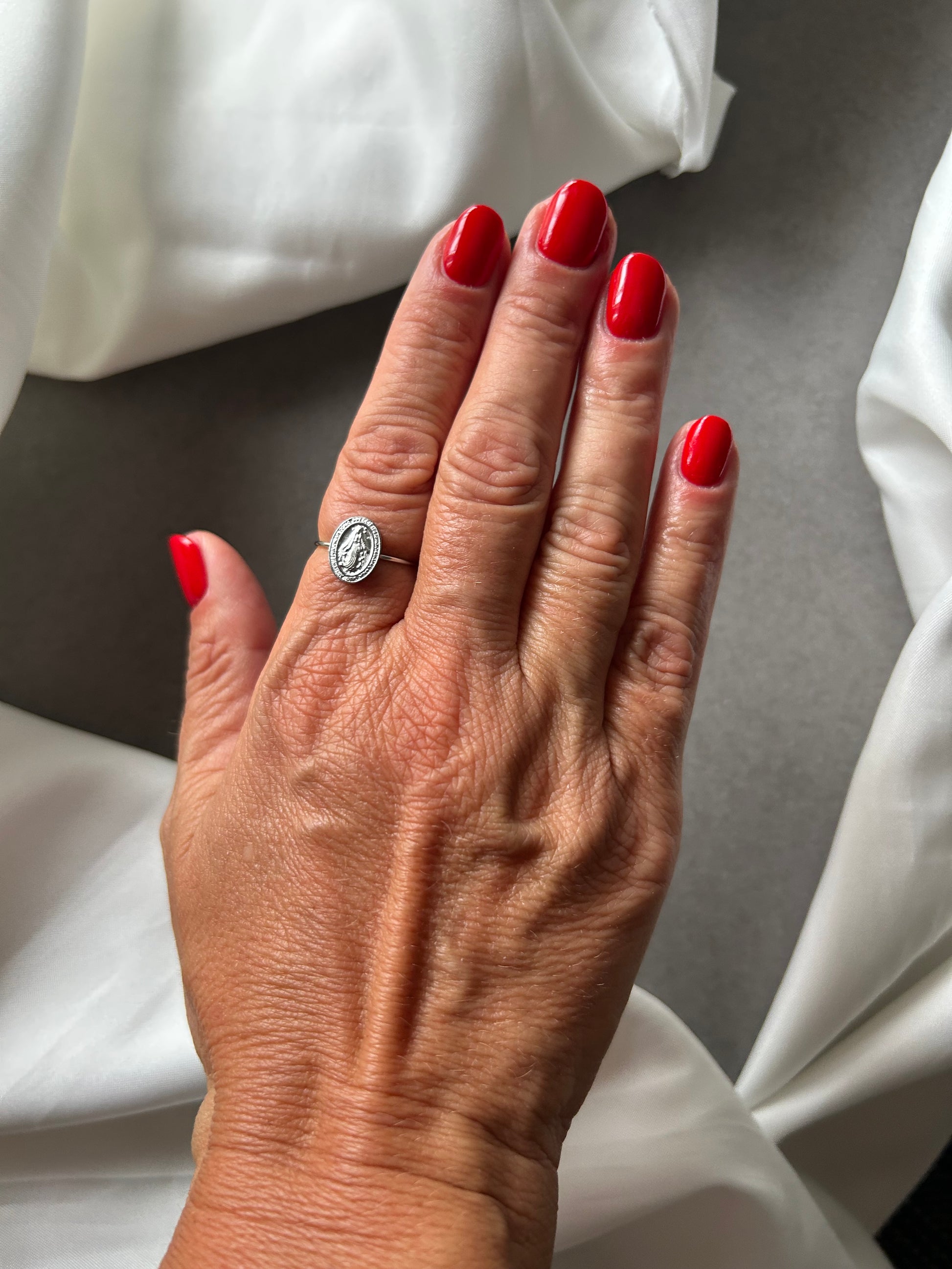 A simple design, an eternal symbol: the Madonna, silent guide and constant presence in the lives of believers. This ring, in its simplicity, becomes a discreet yet profound sign of devotion: a way to carry Mary's protection and sweetness with you every day.