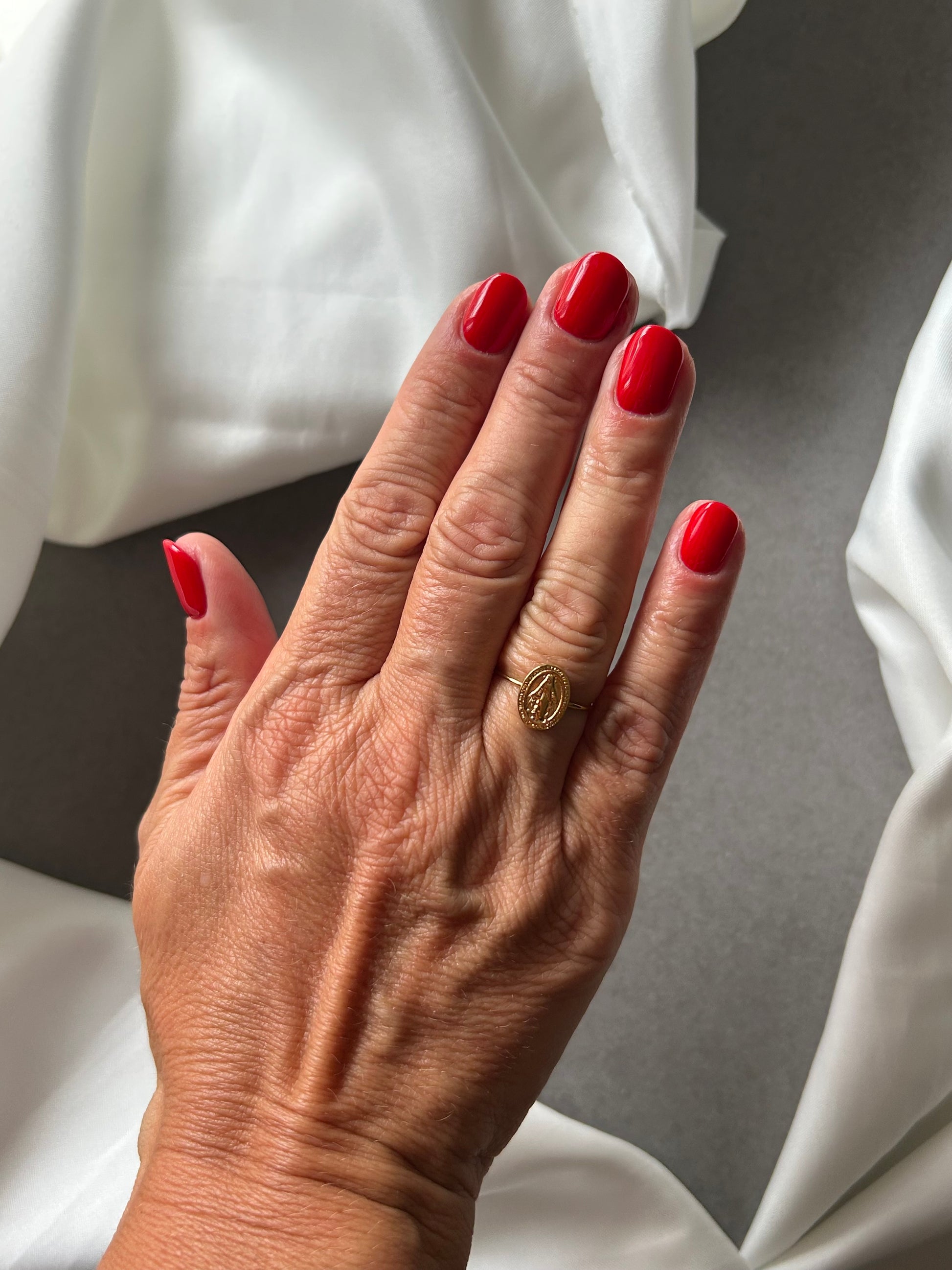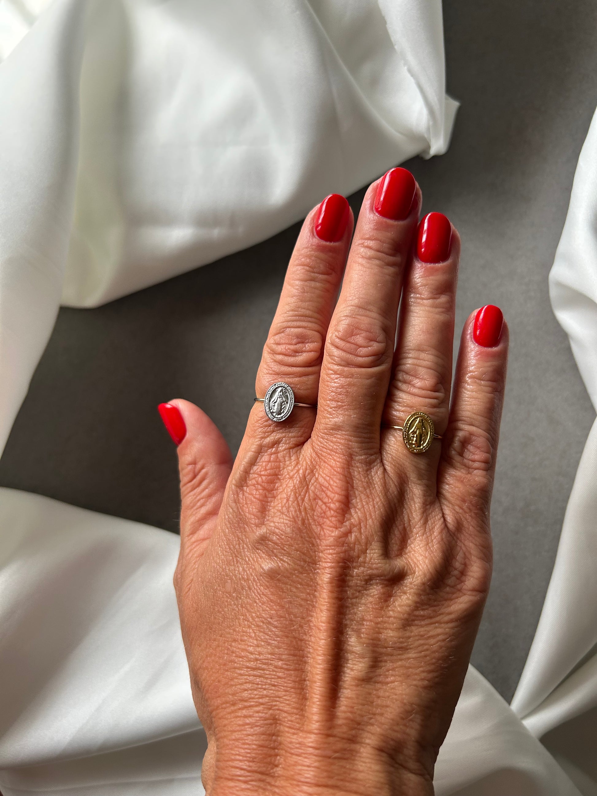 A simple design, an eternal symbol: the Madonna, silent guide and constant presence in the lives of believers. This ring, in its simplicity, becomes a discreet yet profound sign of devotion: a way to carry Mary's protection and sweetness with you every day.