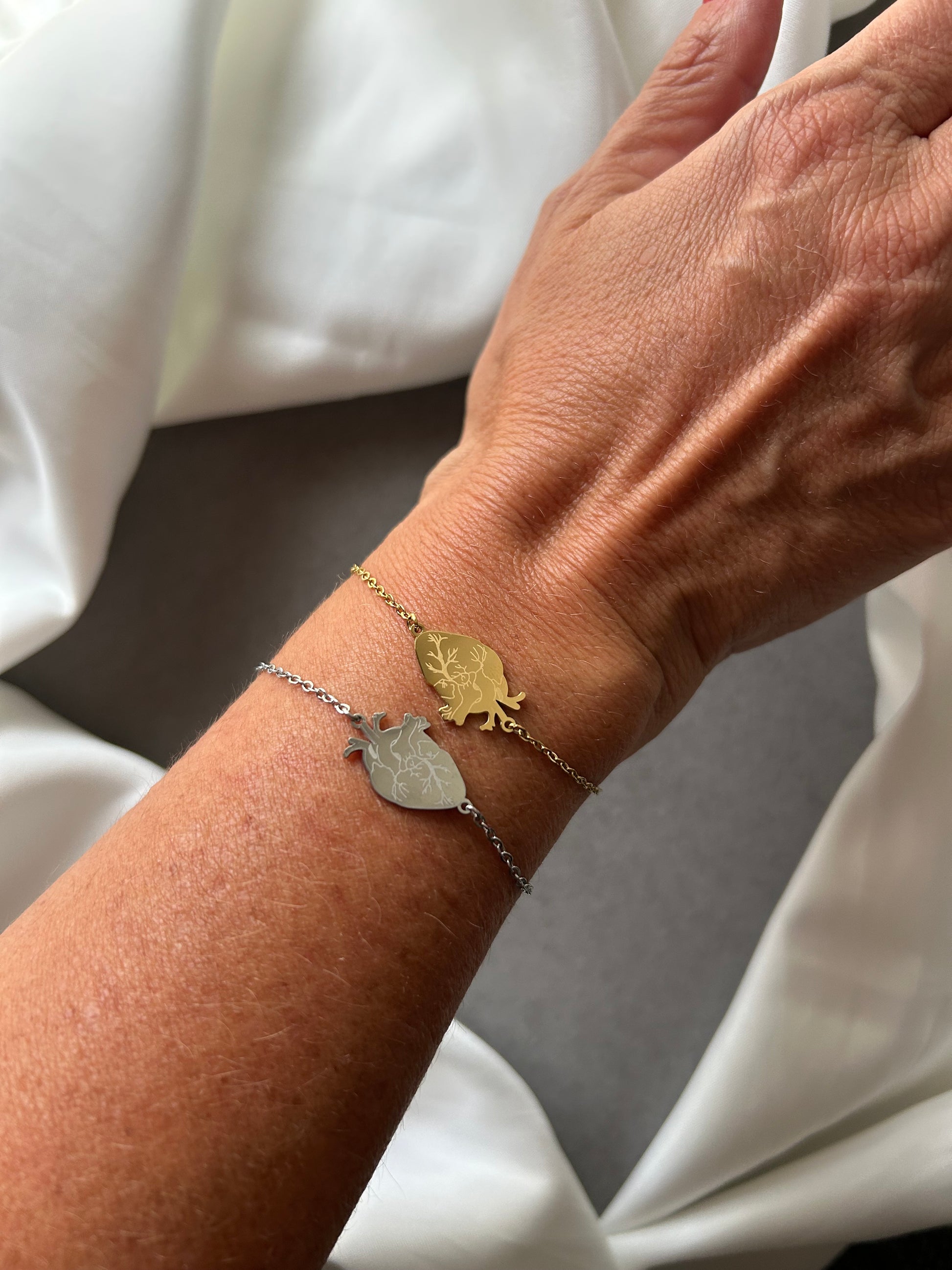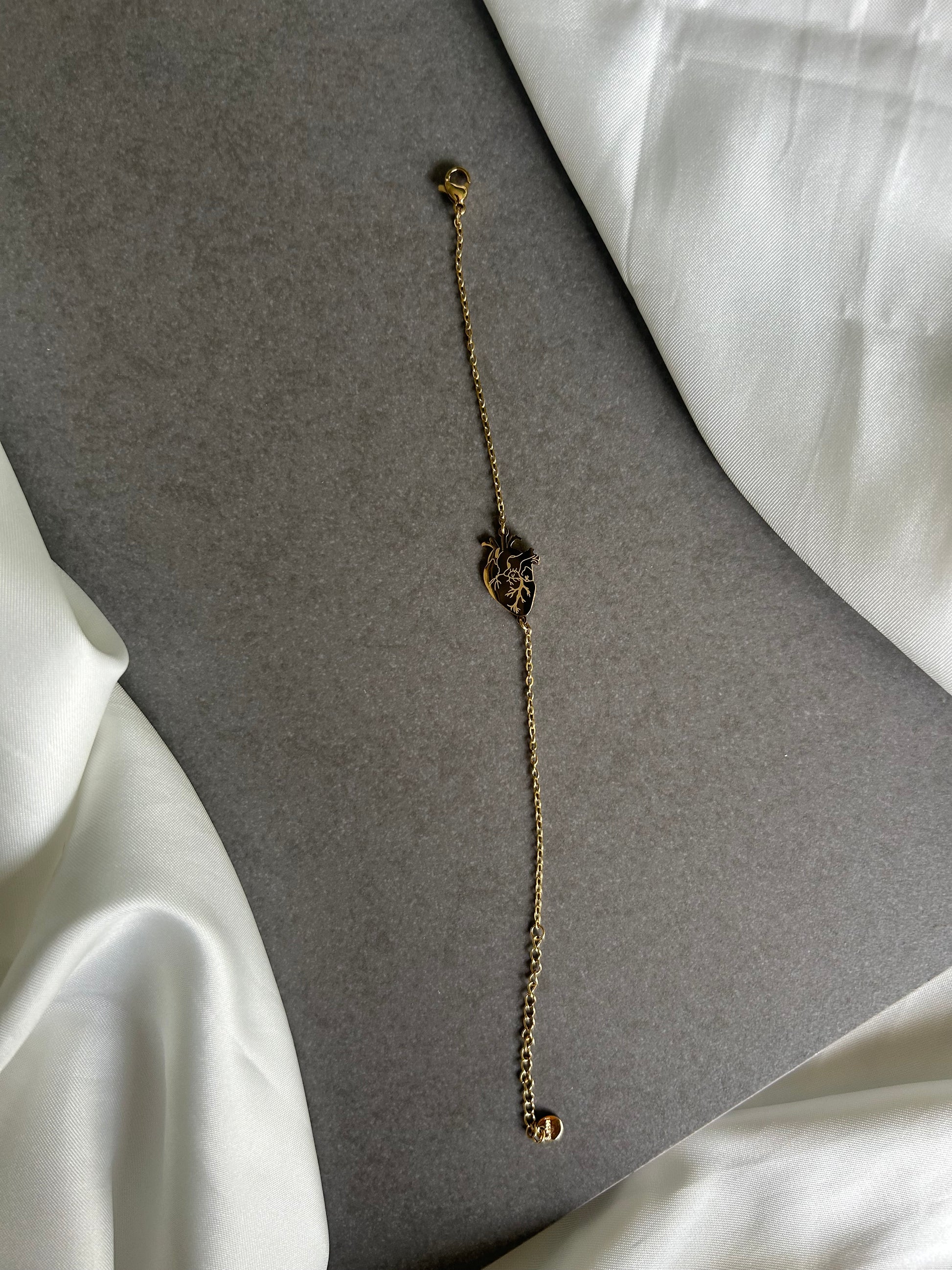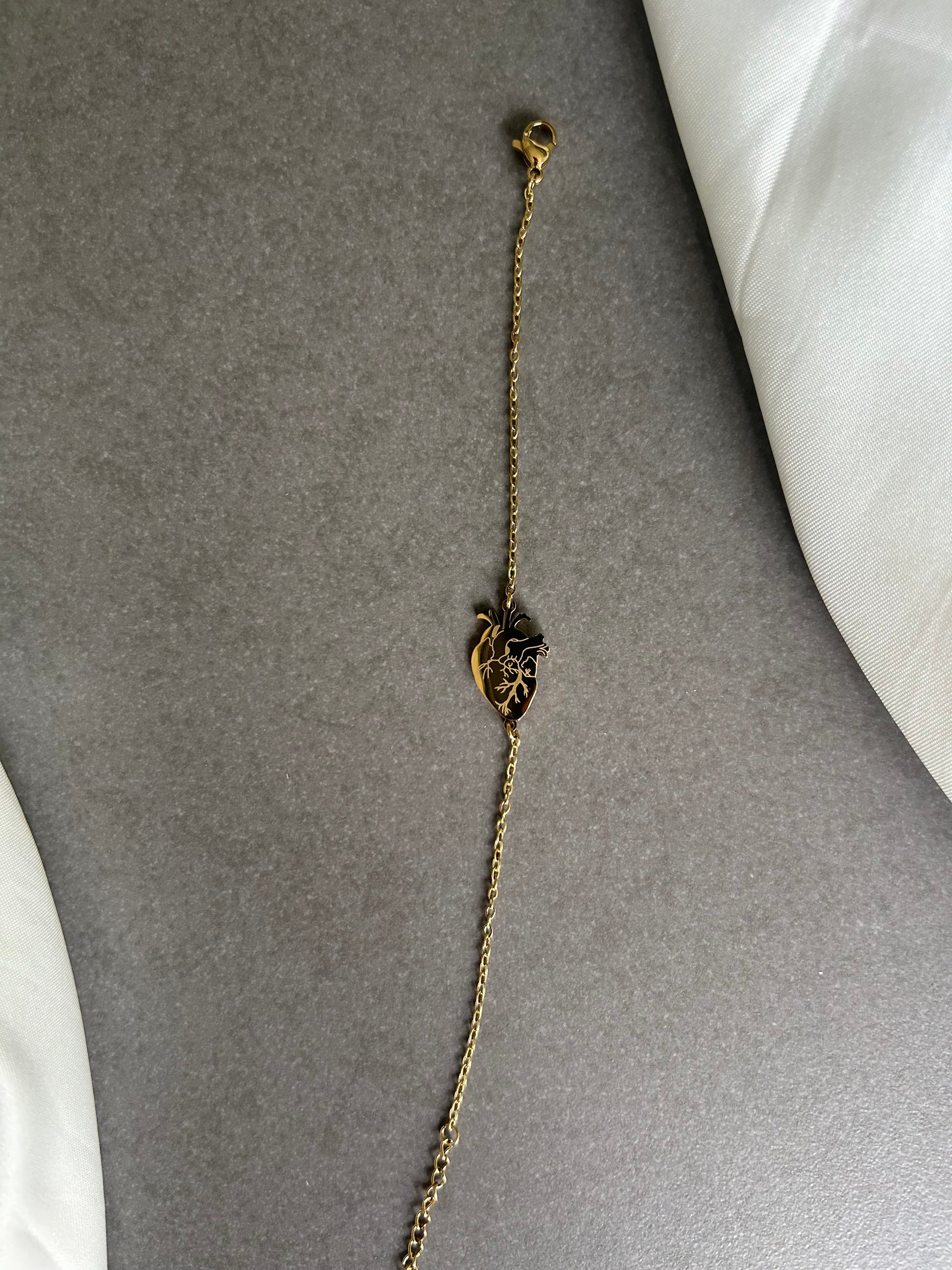 This bracelet celebrates the heart in all its truth: not only a symbol of life, but of pure and unconditional love for faith. The delicately engraved anatomical heart represents the sincerity of those who believe without masks, of those who entrust their heartbeats, their joys, and their wounds to God.