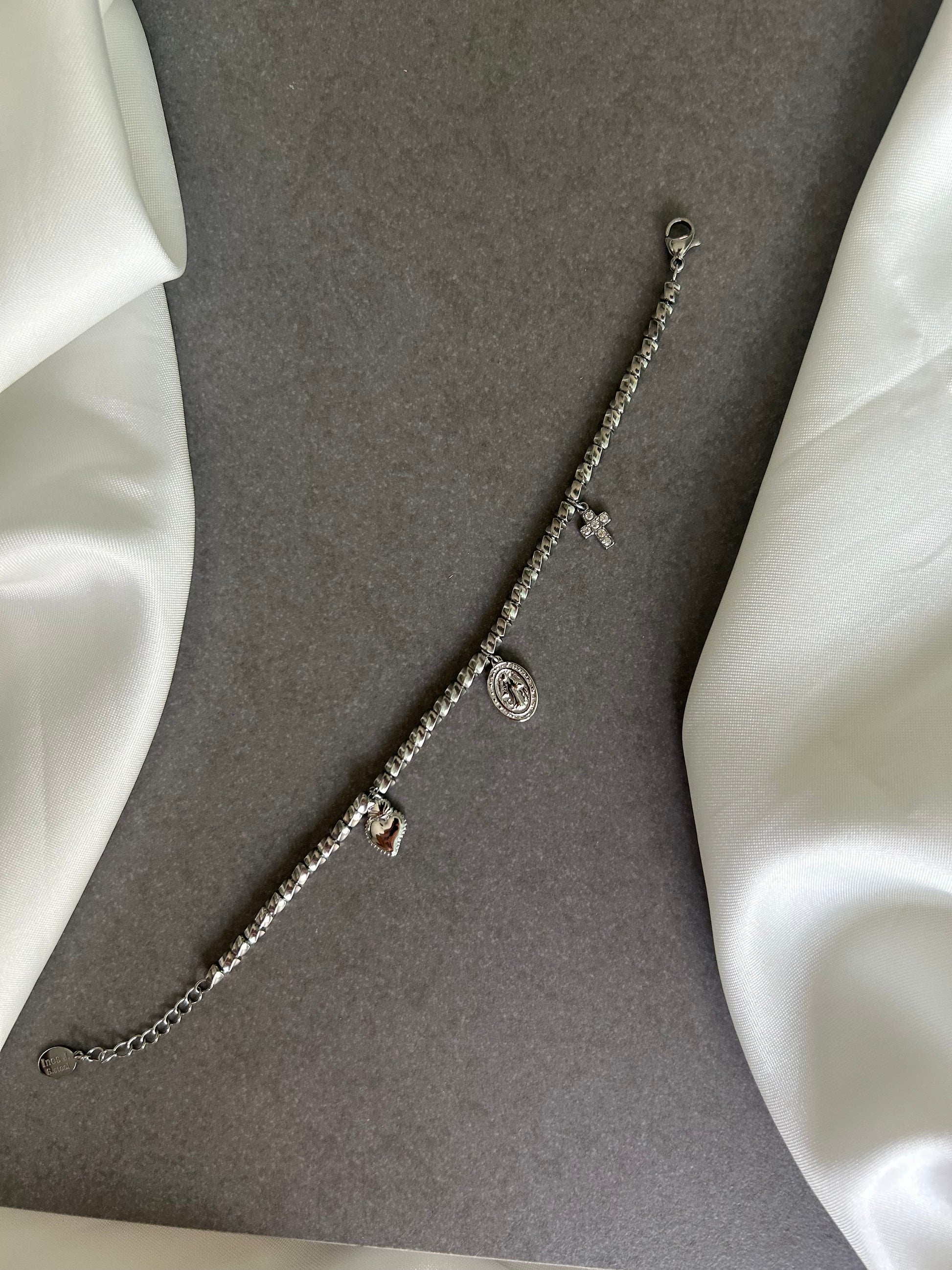 The Sacred Heart speaks of God's infinite love, the Madonna protects with her sweetness and intercession, and the Cross with zircons shines as a sign of hope and salvation.