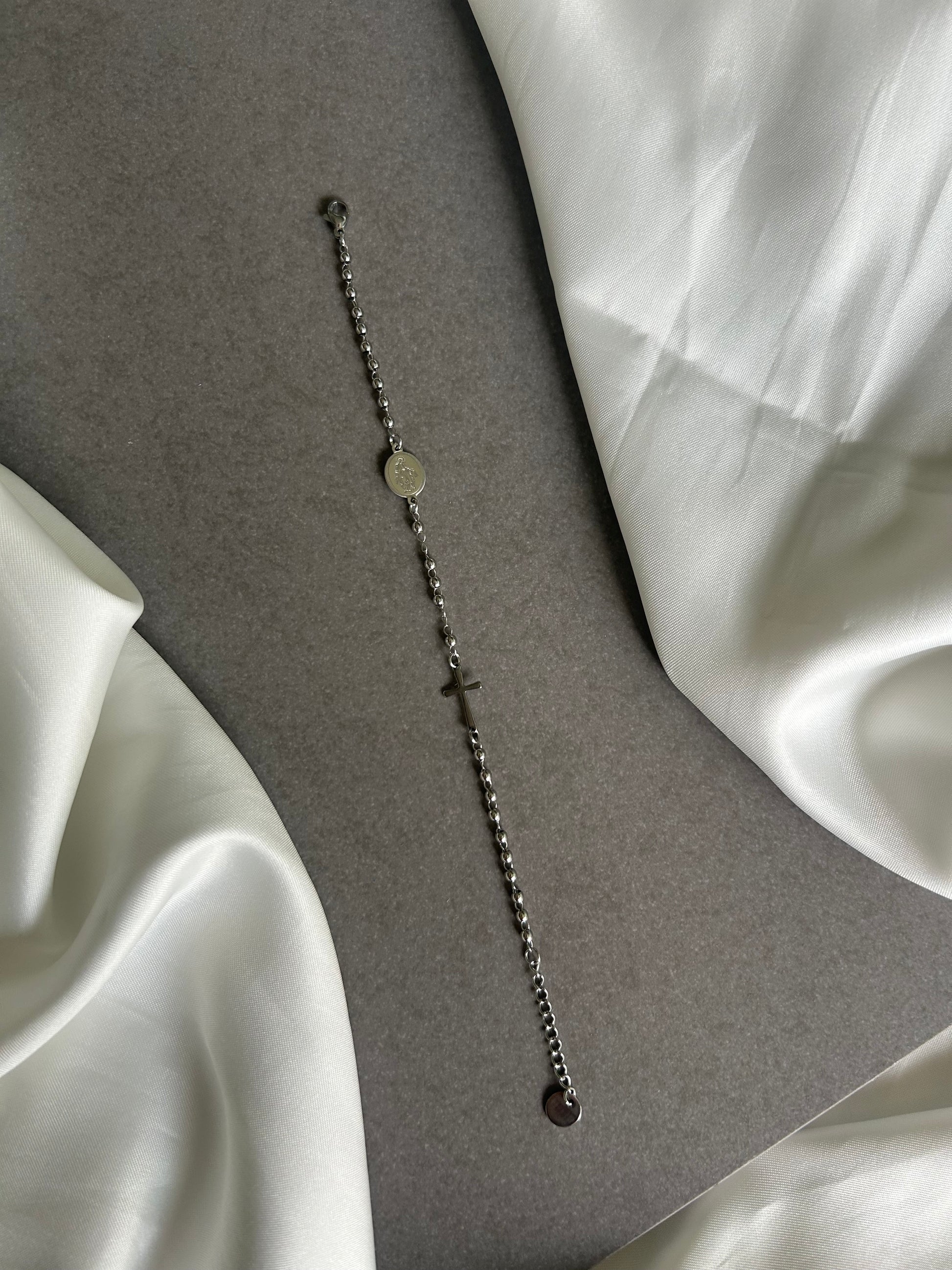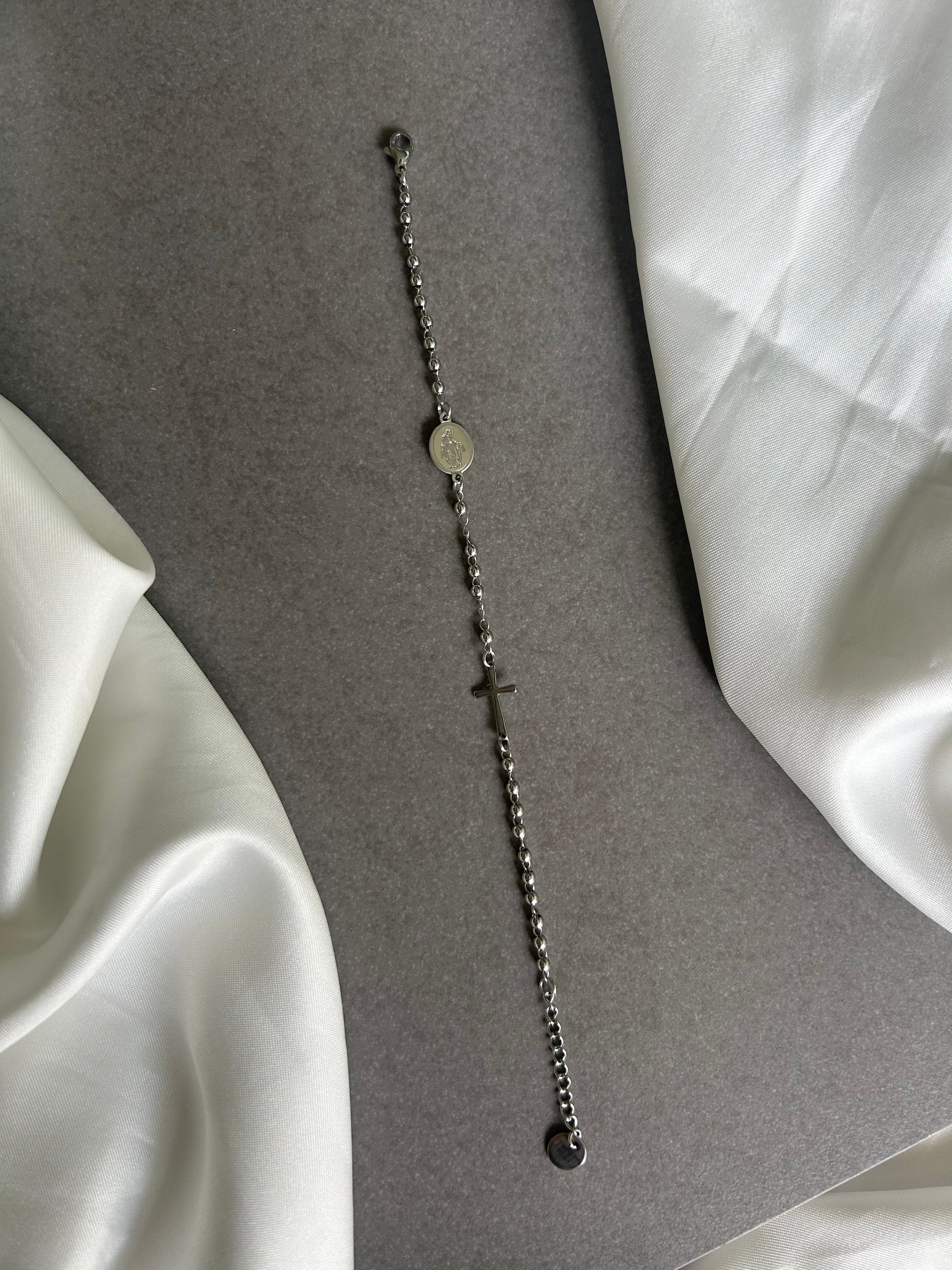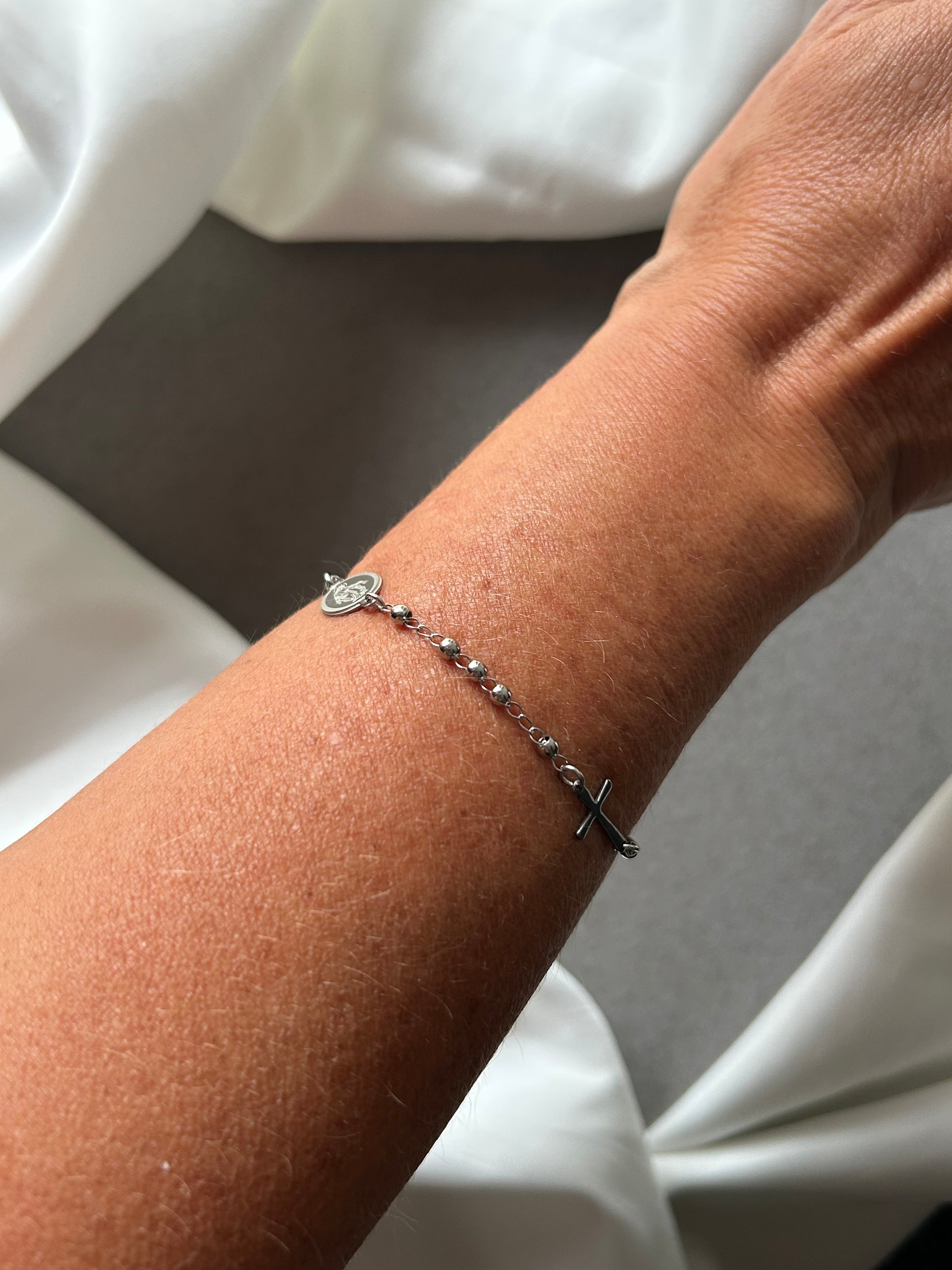 A simple design, but with a profound meaning: this rosary bracelet accompanies you at every moment of the day as a sign of prayer and protection.