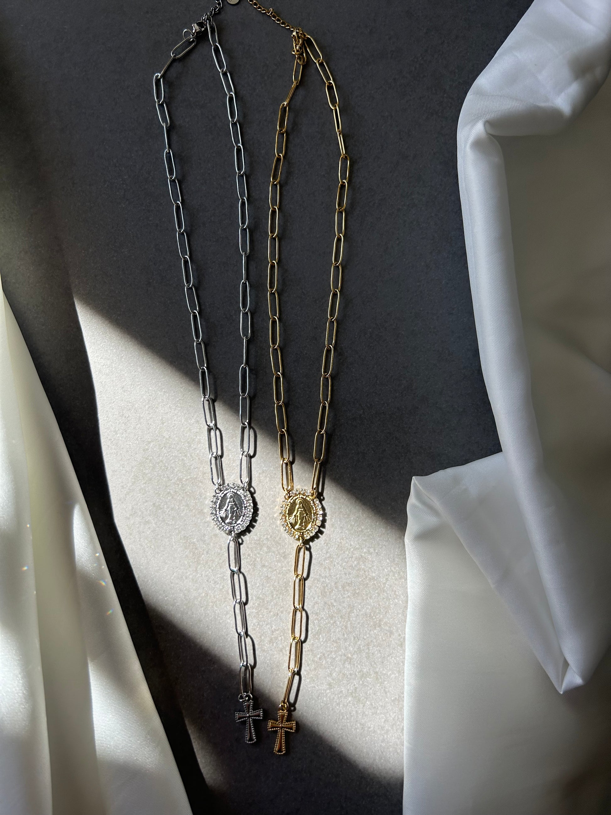 A pendant that encapsulates the sweetness and strength of the Madonna, illuminated by reflections reminiscent of her grace. The Madonna of Light Necklace is more than a jewel: it's a symbol to wear every day, to feel protected by her maternal gaze and always carry her protection with you.