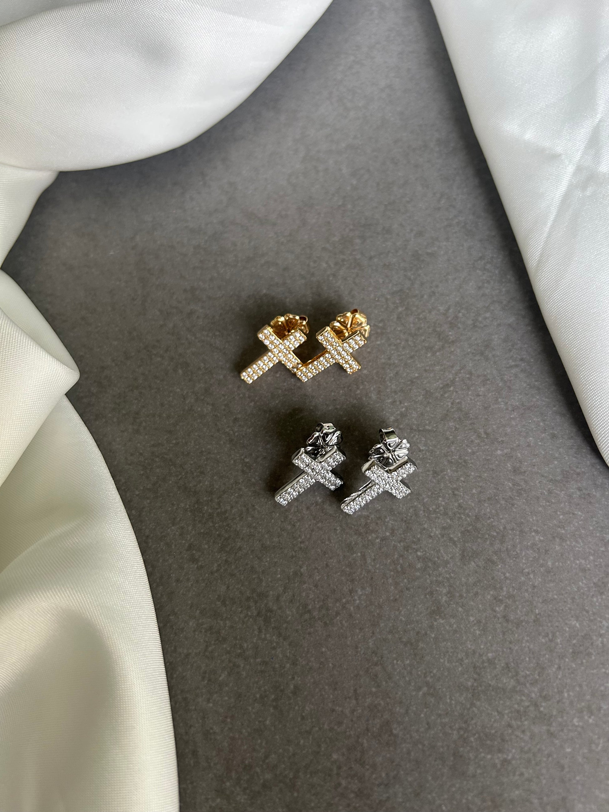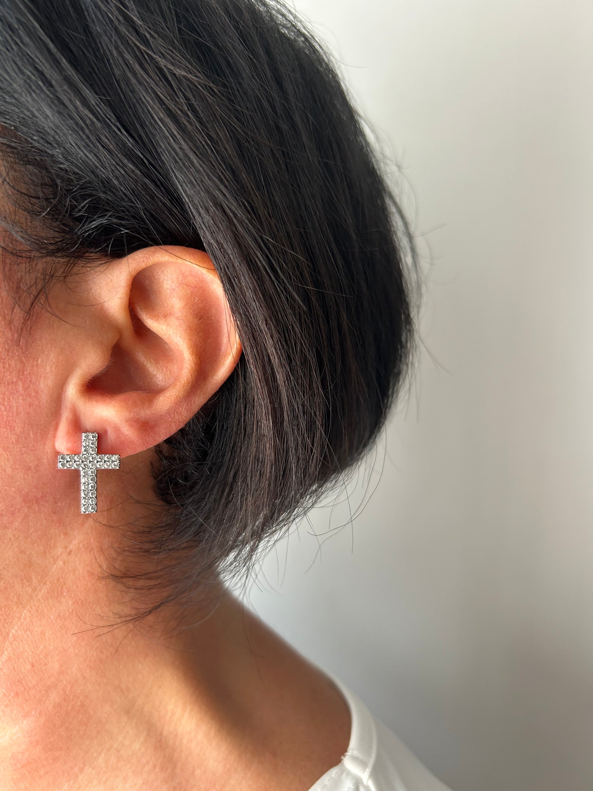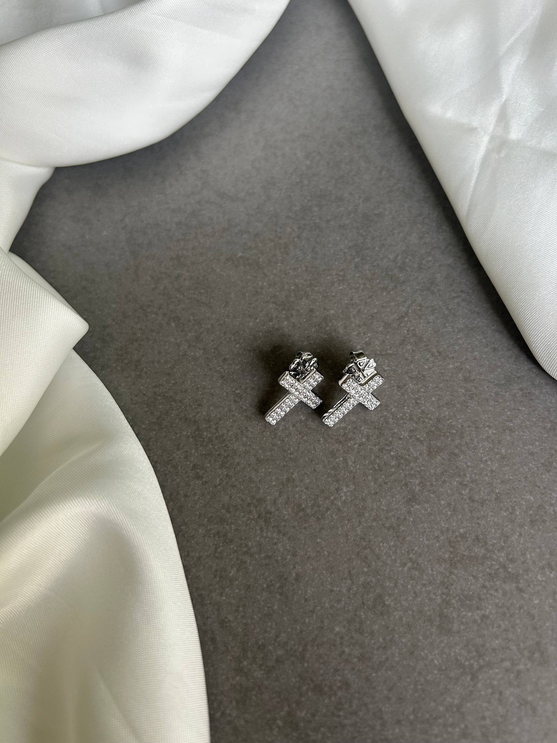 These earrings, embellished with delicate zirconia, transform the cross into a shining sign of faith. A jewel that combines elegance and spirituality, designed for those who wish to wear a symbol of protection and hope every day.
