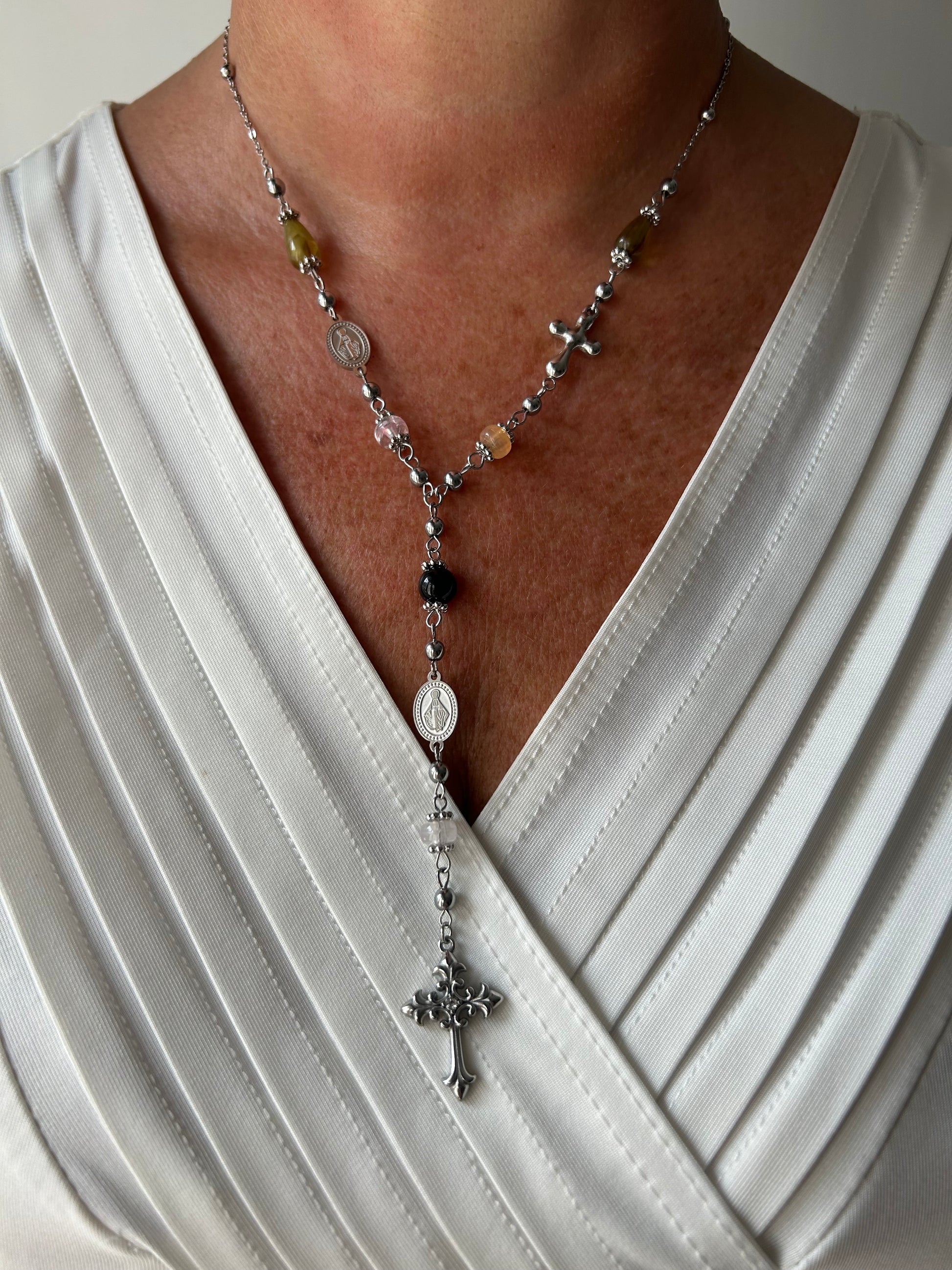 A rosary that combines tradition and intensity, designed for those who love powerful symbols. The Gothic-style cross tells us that even in life's shadows, the light of faith always finds its way.
