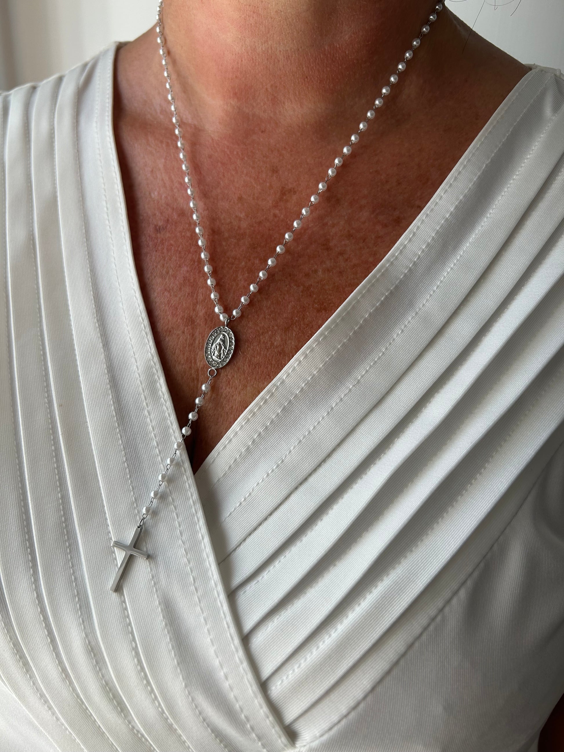 Perfect to wear or keep as a daily prayer companion, this rosary represents the light that guides the faithful in moments of silence and reflection.